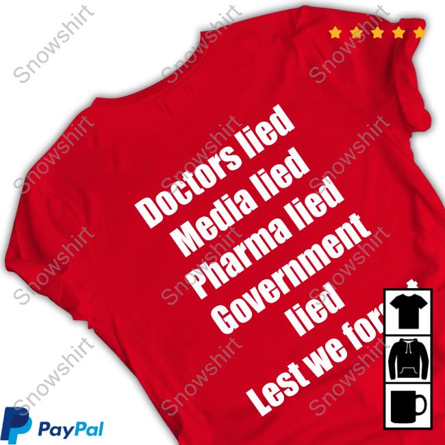Official Never Again Doctors Lied Media Lied Pharma Lied Government Lied Lest We Forget T Shirt